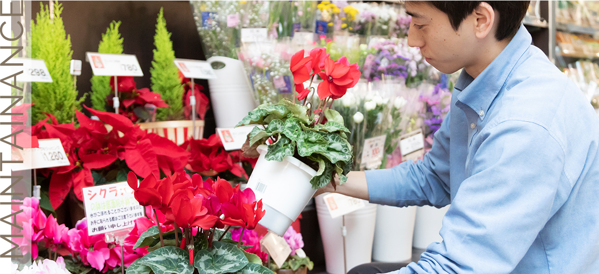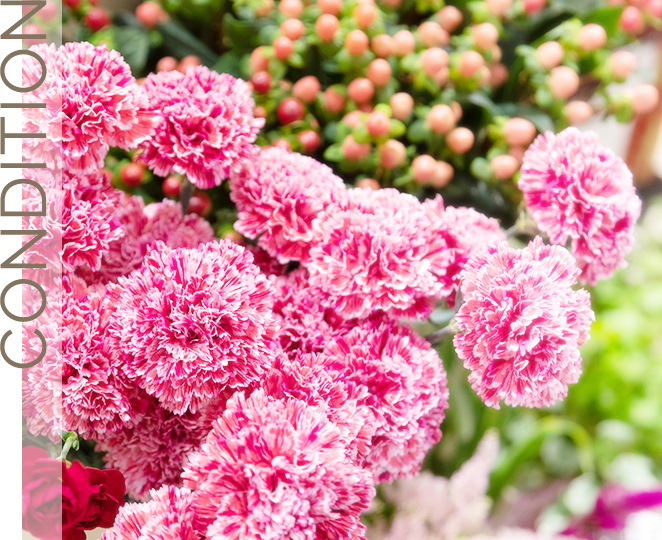 店舗様に陳列されている花の状態から、鮮度維持ができるように温度環境や日当たりなどを提案します。